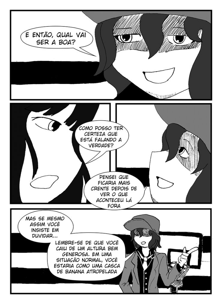 Autor: Lany Oliveira Classificação: Livre Estilo: Tirinhas Gênero: Comedia/ Reflexões Sinopse: Tirinhas que abordam reflexões e questões da mente. Que podem ser mostradas pelas manifestações das emoções em forma humana ou situações cotidianas com personagens diversos. Posts relacionados Contos de Azrael – relatos com Padre Gonzales 4 Tirinhas da Dhi Super Zé
